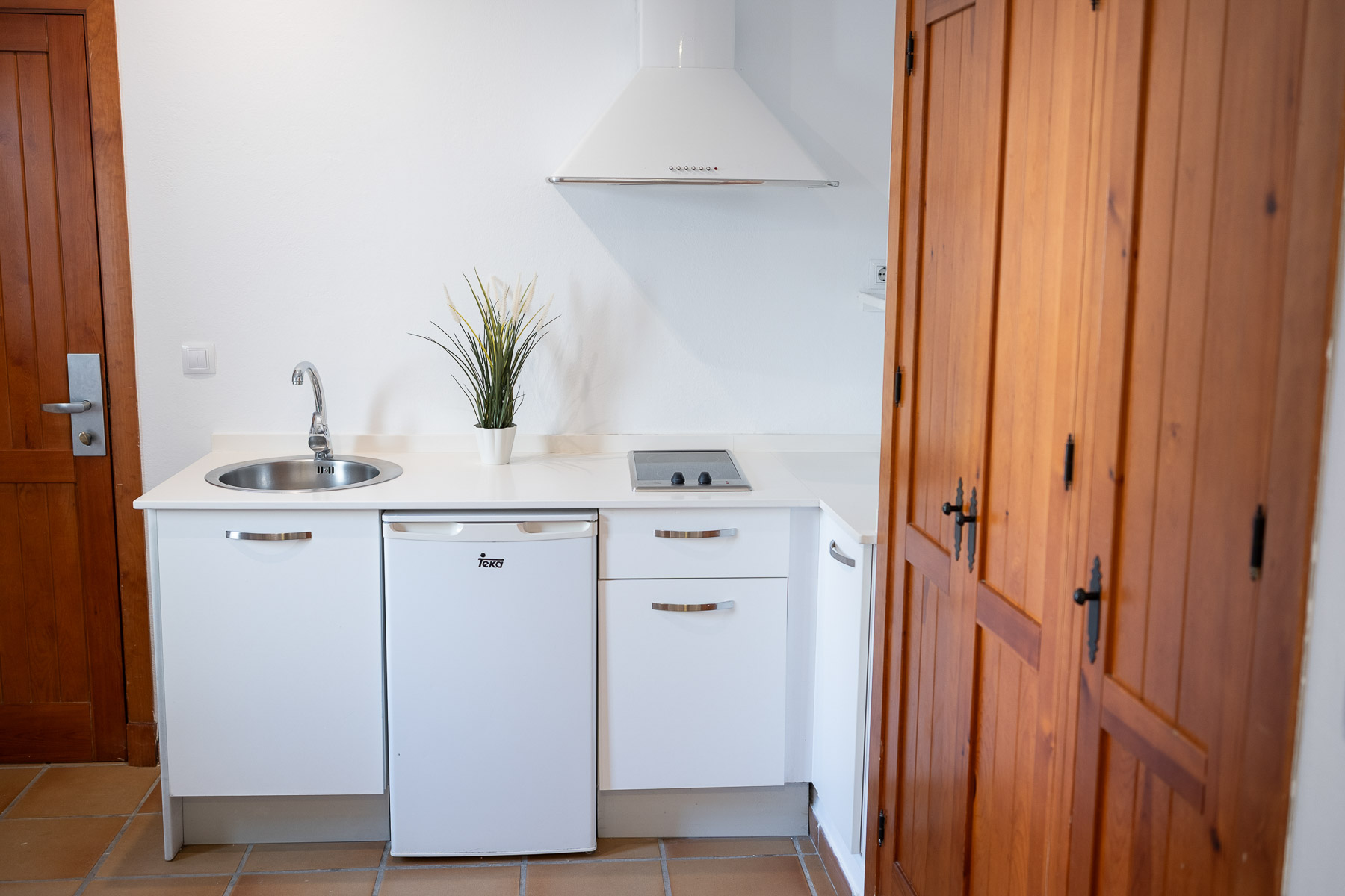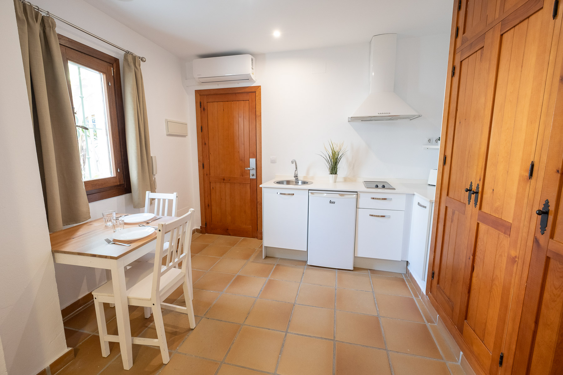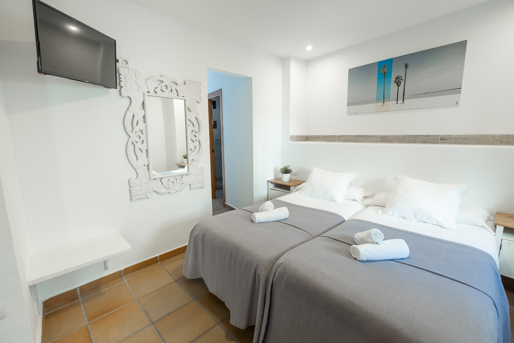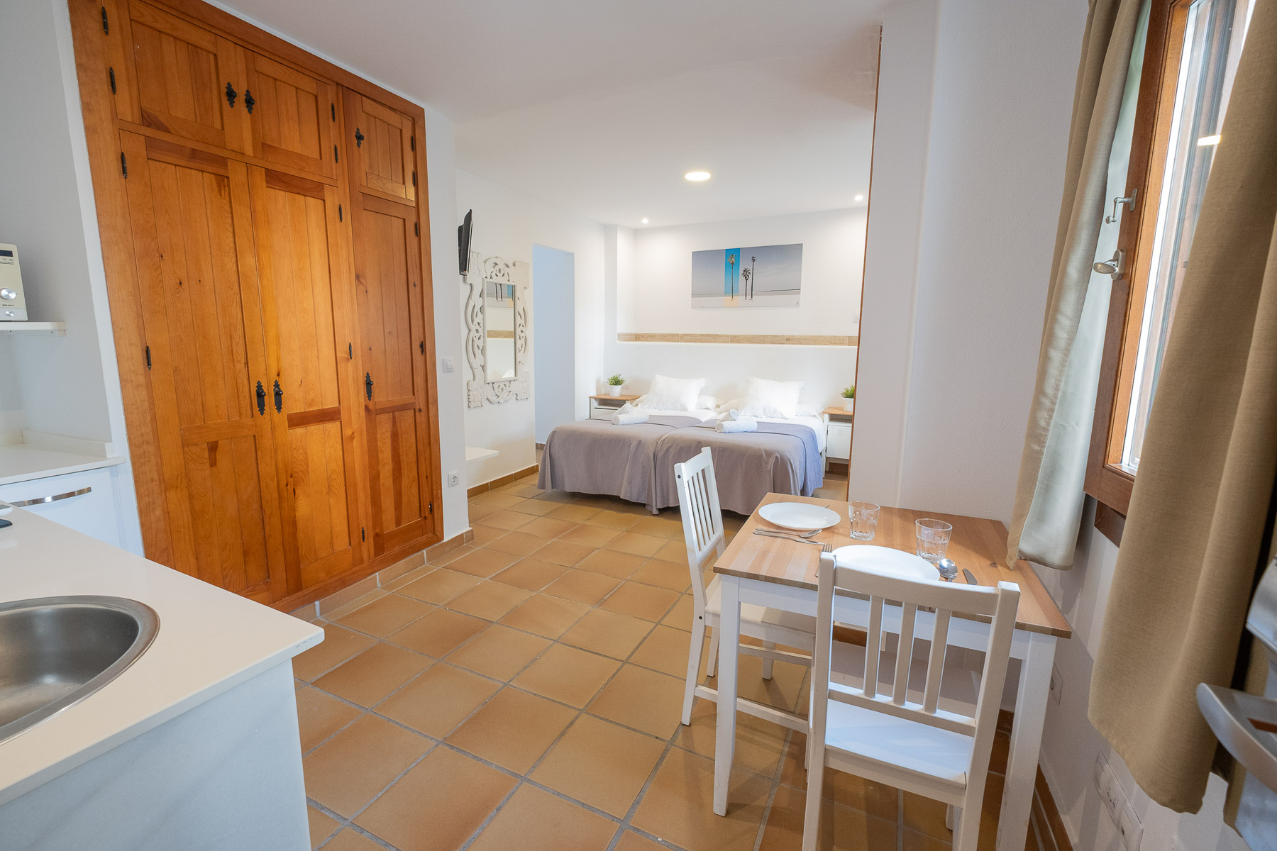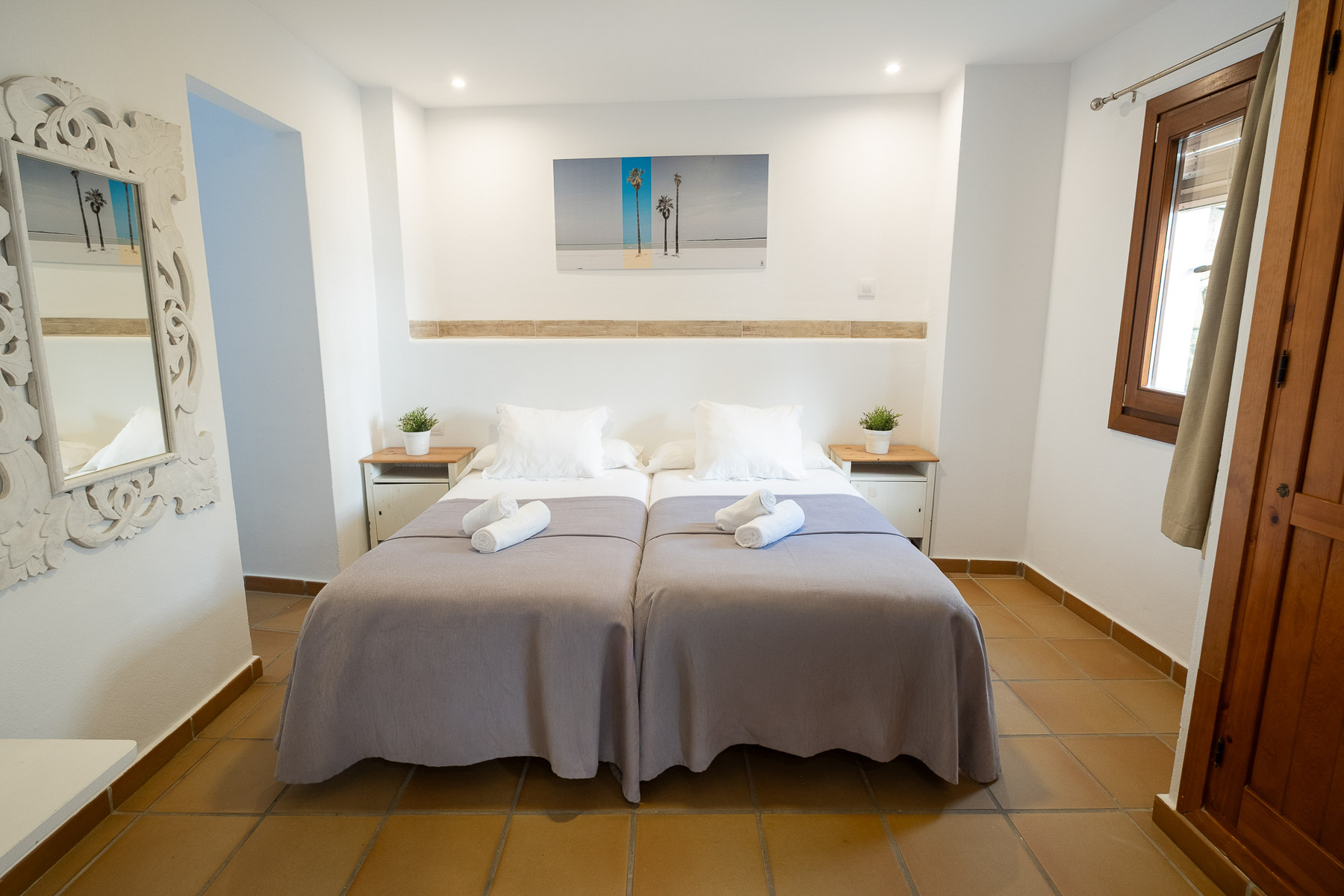 Nuestro estudio con patio es perfecto para disfrutar de Tarifa en todo su esplendor. Cuenta con dos camas individuales, cocina completamente equipada y un baño privado.